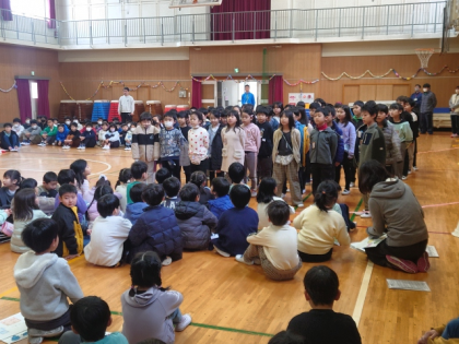 2年生の出し物は、お祝いメッセージと「世界に一つだけの花」の合唱でした。