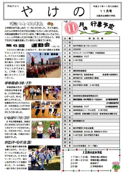 学校だより11月号を配布します。ホームページにもアップいたしました。