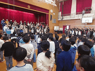 この1年生から6年生までの子どもたち全員で校歌を歌うのは、これが最後です。