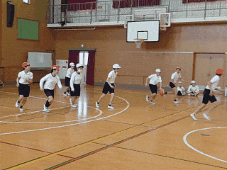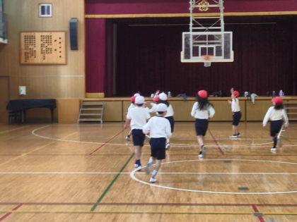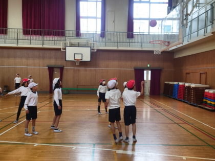 体育科の時間は、体育館でバスケットボールの練習をしました。