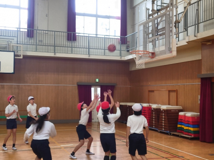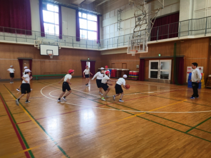 体育科の時間は、体育館でバスケットボールの練習をしました。