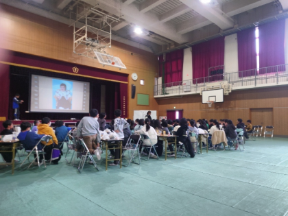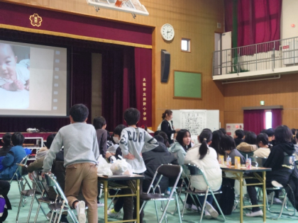 出し物の間に、子どもたちの小さい頃の写真をスクリーンに映し、それがだれなのか当てるクイズをしました。