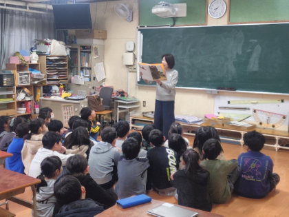 図書ボランティアの方に来ていただき、全学級の子どもたちに本の読み聞かせをしていただきました。