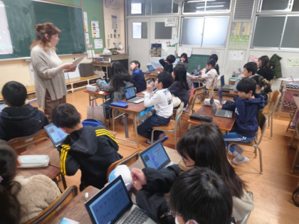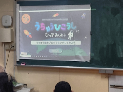 今日はScratchを使って、うちゅう船を動かすプログラムを組み立てました。