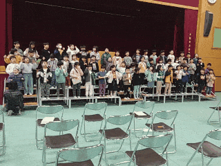 入学式のお祝い行事に向けて、「ドキドキドン!一年生」の歌を練習しています。