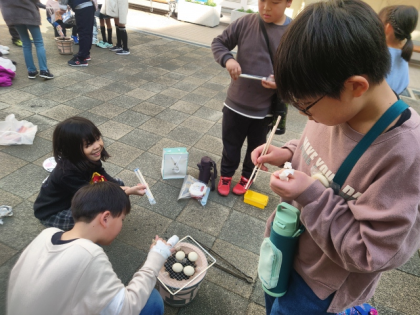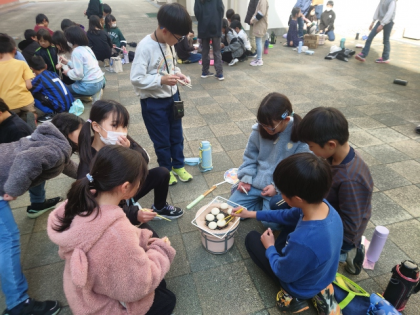 今日は中庭で、実際に七輪を使って調理をする体験をしました。