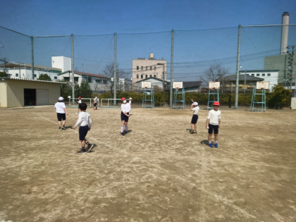 体育科では、「ベースボール型ゲーム」、ティーボールの学習をしました。