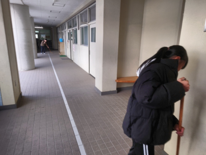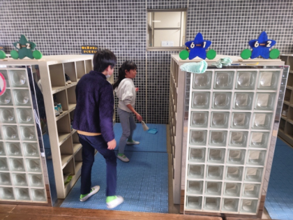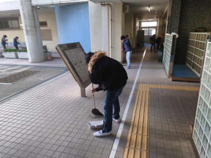 月曜日の卒業式に向けて、5年生が講堂や校舎、教室などの掃除や準備を教職員と一緒に行いました。