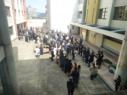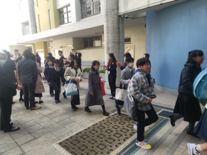 保護者の方と教職員でつくった花道を通って、正門へ。