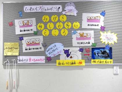 保健室前の掲示が11月になり新しくなりました。歯垢の件さをするとみがき残しが多いことがわかりました。しっかりと掲示をみて歯の磨き方をしりましょう。