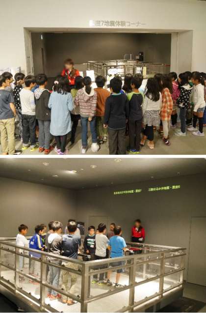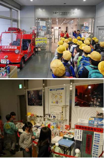 昼食後に阿倍野防災センターに入りました。阿倍野防災センターでは阪神淡路大震災などさまざまな地震をシュミレーション体験や映像による地震体験や防災グッズなどの展示もあり学習することができます。