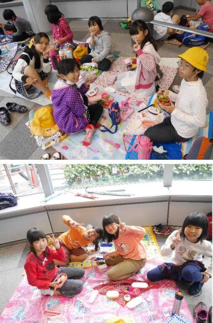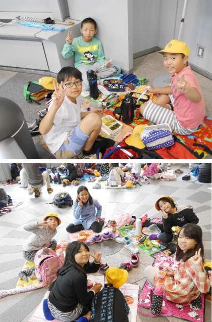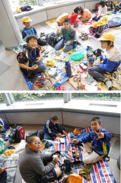 阿倍野防災センターに到着しました。ロビーをおかりしてお弁当をいただきました。とってもおいしかったですね。