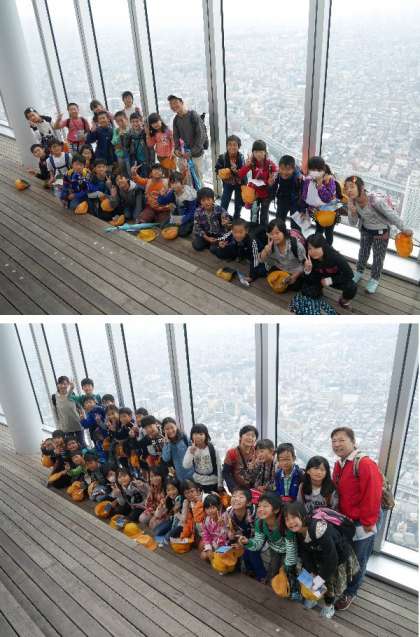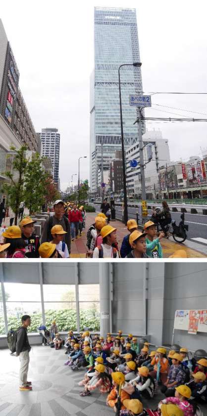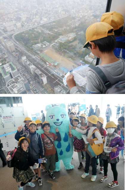 あべのハルカスの展望台で記念撮影を撮りました。あへのベアーもでてきてくれました。阿倍野防災センターまでハルカスから歩いていきました。