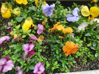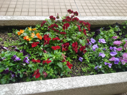 中庭のプランターのお花たちも、入学式に合わせるようにきれいに咲いています。