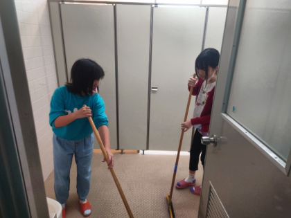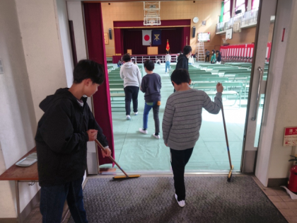 新6年生は、講堂のいす並べや、清掃、教室準備にもくもくと取り組んでがんばっていました。