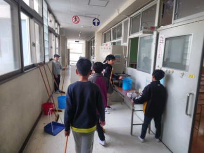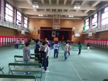 新6年生は、講堂のいす並べや、清掃、教室準備にもくもくと取り組んでがんばっていました。