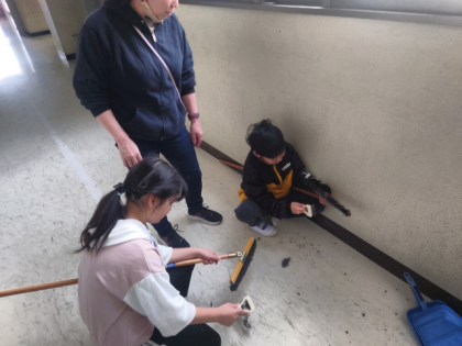 新6年生は、講堂のいす並べや、清掃、教室準備にもくもくと取り組んでがんばっていました。