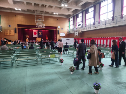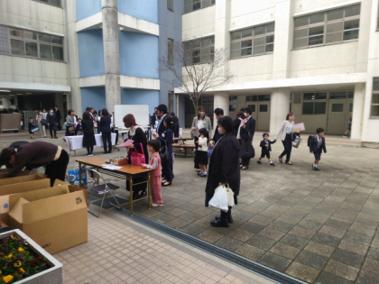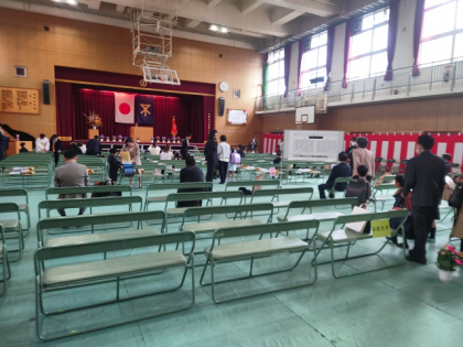 新入生たちが保護者の方と一緒に元気に登校してきました。