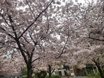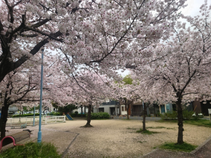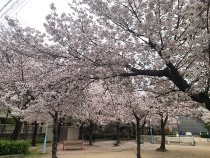 学校の桜は、ほとんど葉桜になりかけていますが、さくら公園の桜はたくさんの花がきれいに咲いています。