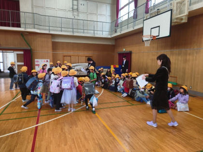 始業式後に、新しい担任から子どもたちのクラス分けを発表しました。