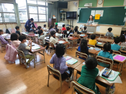 また、今日から始まる給食に向けて準備の仕方などを覚えました。