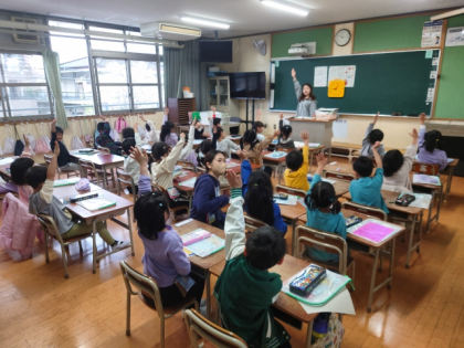 今日は、鉛筆の持ち方や手のあげ方など学習で大切な約束やきまりについて勉強しました。