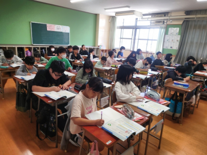 国語科の時間は、「遊びに行くなら海がよいか、山がよいか」をテーマに、同じ意見をもつ友達と話し合います。