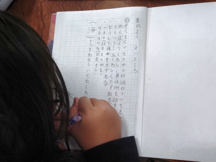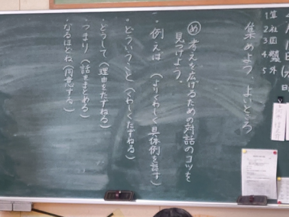国語科の時間は、「遊びに行くなら海がよいか、山がよいか」をテーマに、同じ意見をもつ友達と話し合います。