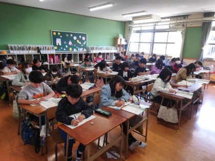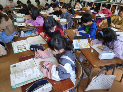 算数科の時間は、日本の人口など、一億を超える数のしくみについて調べました。