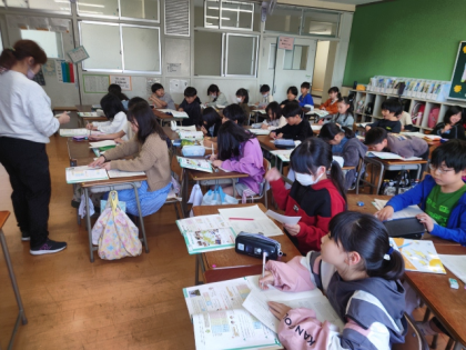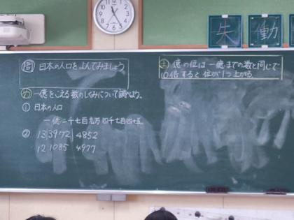算数科の時間は、日本の人口など、一億を超える数のしくみについて調べました。