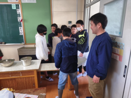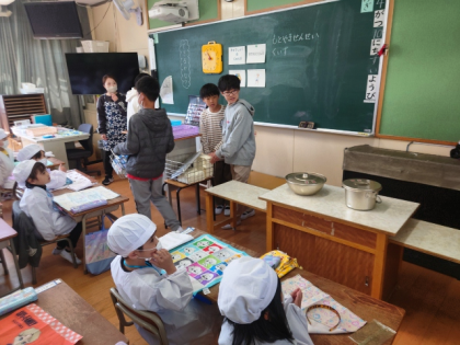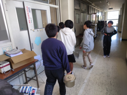 6年生の人たちが、1年生の給食を運んできてくれました。