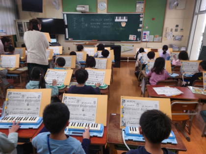 鍵盤ハーモニカでタンギングの練習をしたり、「むっくり くまさん」を歌いながらみんなで遊んだりして楽しく学習しました。