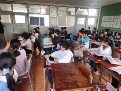 英語科の時間は、C−NET(ネイティブ)の先生に教室に来ていただき、学習しました。