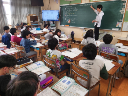 算数科の時間は、42.195kmを10倍、100倍、1000倍した長さを調べました。