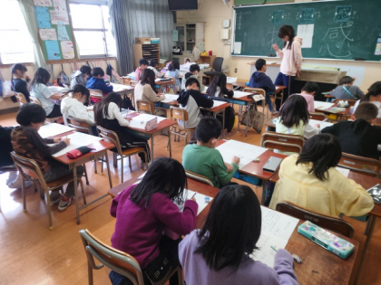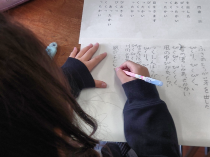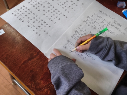 国語科の時間は、教科書の詩「春の子ども」を視写しました。