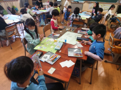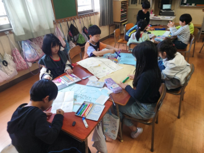 生活科の時間は、1年生に学校のようすを教える「学校たんけん」の準備をしています。