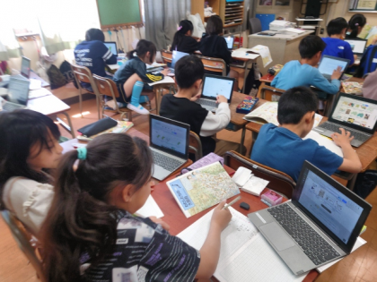 社会科の時間は、「都道府県クイズ」を作る活動をしています。