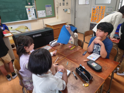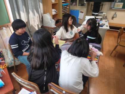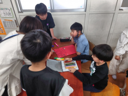 学級活動の時間は、係のグループに分かれて、メンバーや仕事内容を知らせるための掲示物を作りました。