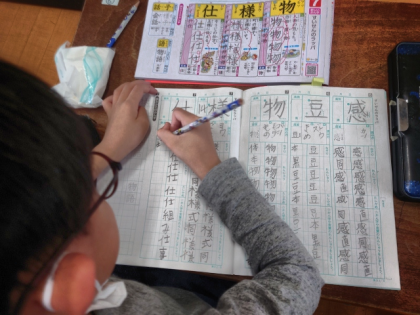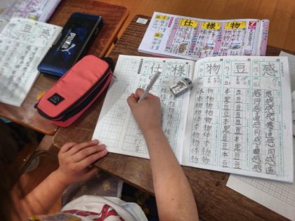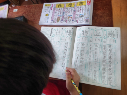 国語科の時間は、漢字ドリルを見ながら漢字ノートに「様」「仕」などの練習をしました。
