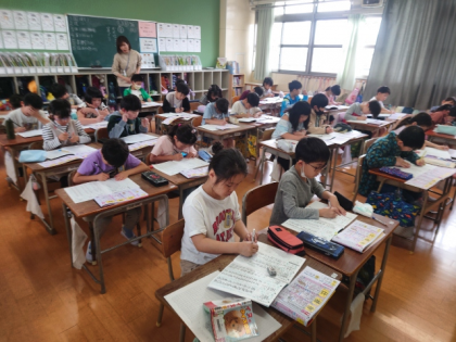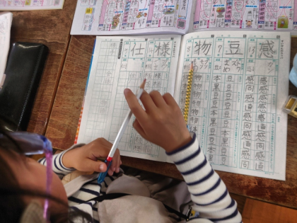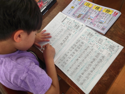 国語科の時間は、漢字ドリルを見ながら漢字ノートに「様」「仕」などの練習をしました。
