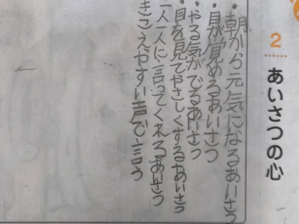 道徳の時間は、教材文「あいさつの心」を学習しました。