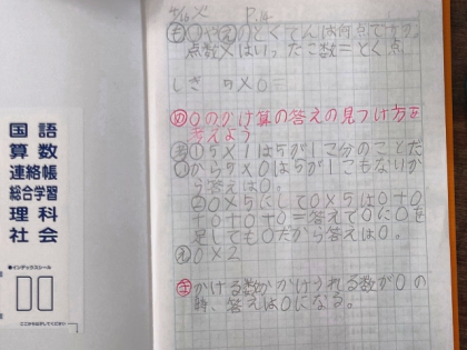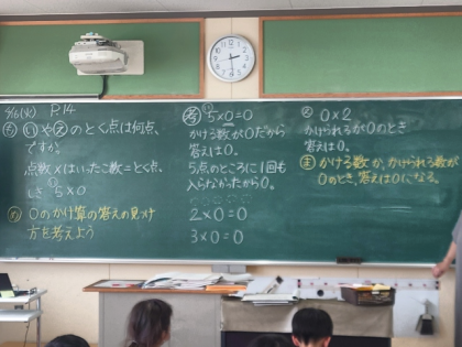 算数科の時間は、かける数が0のかけ算の仕方を考えました。