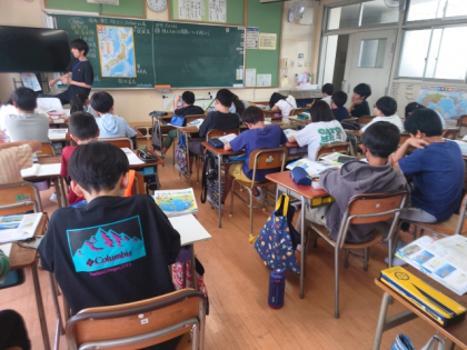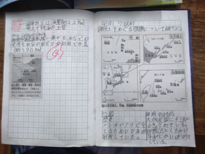 社会科の時間は、教科書や資料集をもとに、日本の領土や領海などを確認し、領土をめぐる問題について調べました。