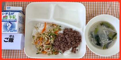 今日の献立は、ビビンバ・ トック・牛乳でした。