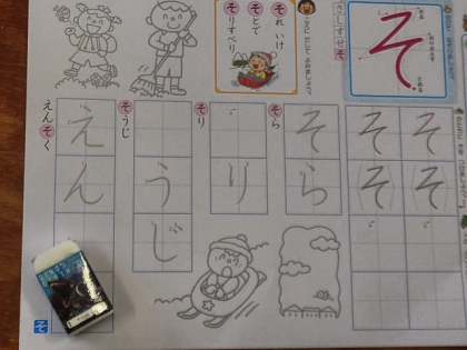 今日は、ひらがなの「そ」の学習をしました。
