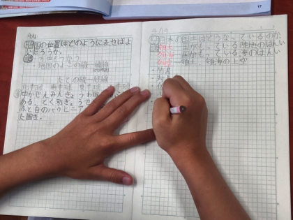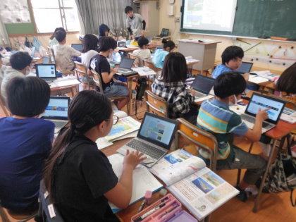 社会科の時間は、日本の国土や、いろいろな島について教科書や資料集、学習用端末などを使って調べました。