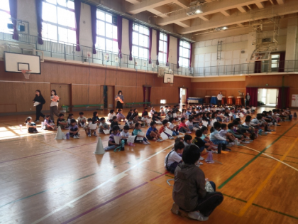 1・2時間目に、1年生と2年生で学校たんけんをしました。