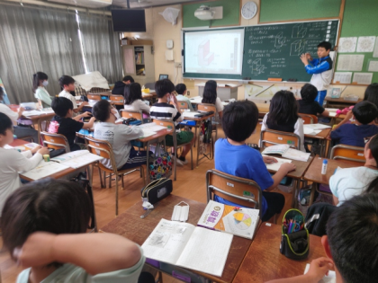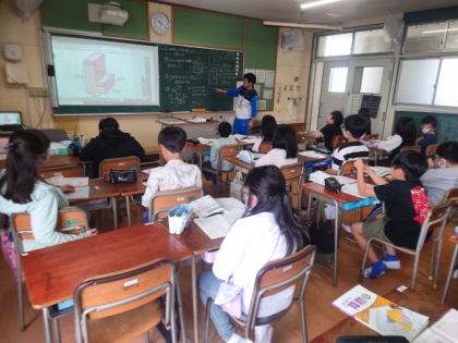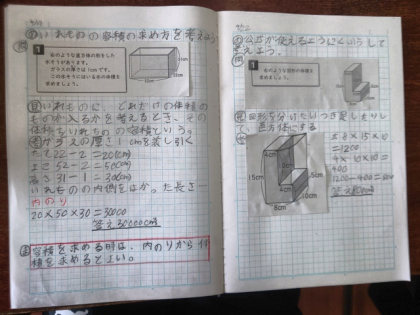 算数科の時間は、「L字」の形の立体の体積の求め方を考えました。