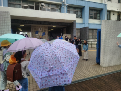 小雨降る中の登校となりました。
