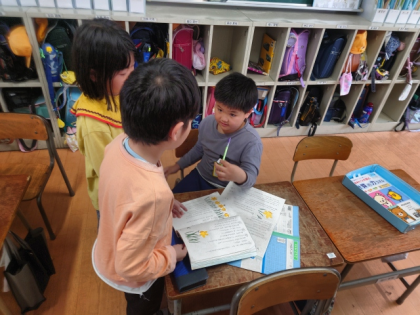 国語科の時間は、物語文「すいせんのラッパ」の学習をしています。
